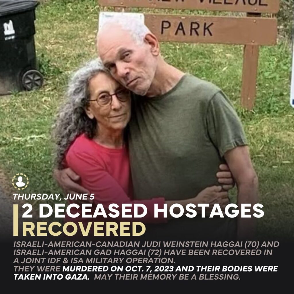 एक बयान में कहा गया कि 70 साल की जूडी वेनस्टीन हग्गाई, जो की एक कनाडाई नागरिक भी थीं और उनके पति 72 वर्षीय गादी हग्गाई की मुजाहिदीन डिग्रेड समूह के बंदूकधारियों ने किबूत्ज नीर ओज पर हमला करके हत्या कर दी.