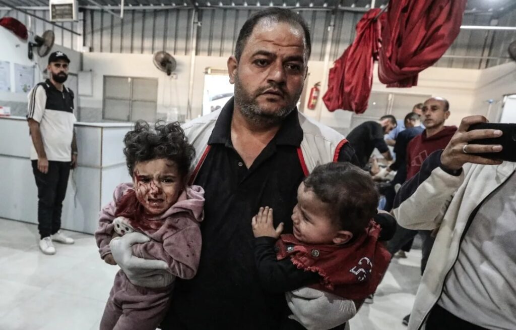 22 नवंबर, 2025 को इज़राइली सेना द्वारा गाजा के कई इलाकों पर हमले शुरू करने के बाद घायल फिलिस्तीनी बच्चों को अल – अवदा अस्पताल लाया गया. [Moiz Salhi/Anadolu]