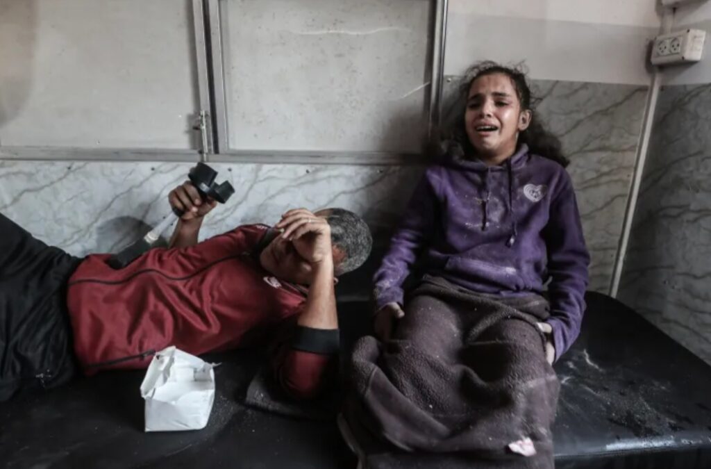 घायल फिलिस्तीनी अल – अवदा अस्पताल में इलाज का इंतजार कर रहे हैं. [Moiz Salhi/Anadolu]