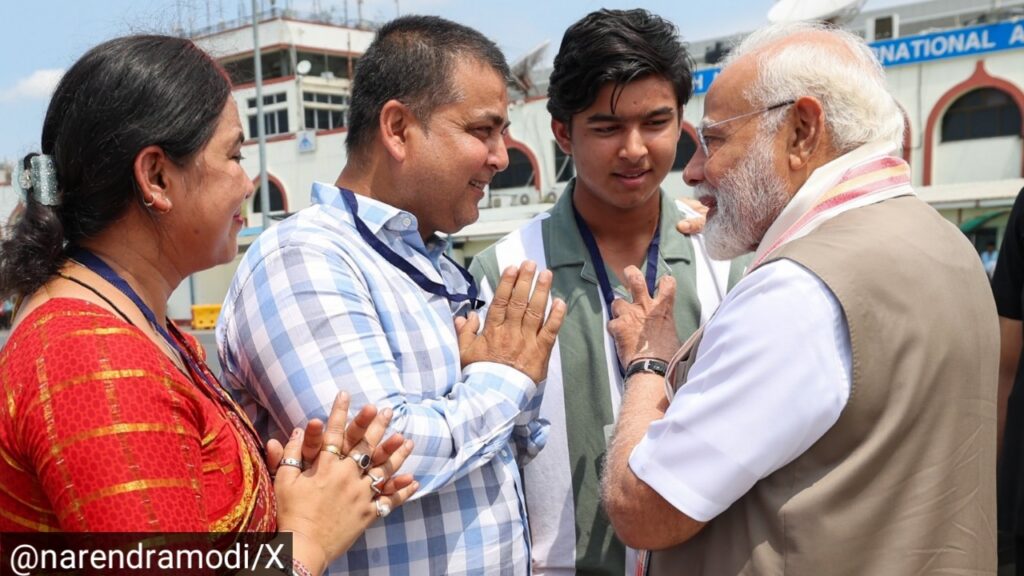 प्रधानमंत्री नरेंद्र मोदी वैभव सूर्यवंशी से पटना एयरपोर्ट पर मुलाकात की साथ में वैभव सूर्यवंशी के माता-पिता भी थें. वैभव आईपीएल में खेलने वाले सबसे कम उम्र के खिलाड़ी हैं.