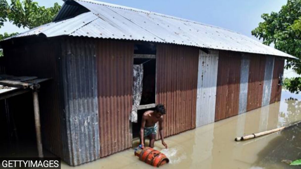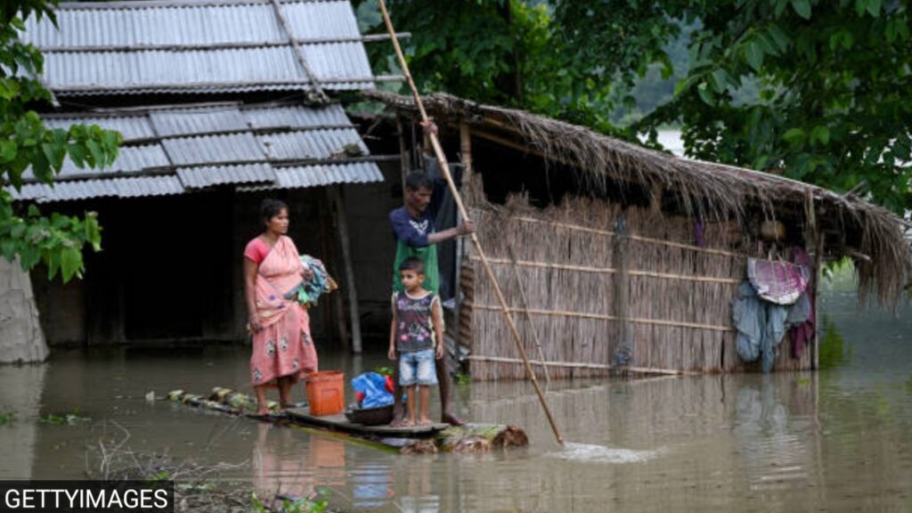 भारी बारिश की वजह से असम राज्य की राजधानी गुवाहाटी में आई बाढ़ से लोग बहुत परेशान हैं.
